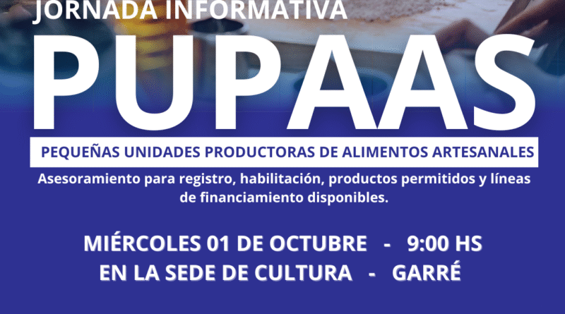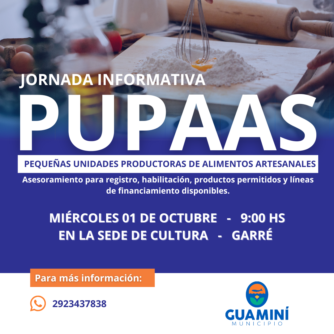 ๐ Te invitamos a participar de esta jornada sobre Pequeรฑas Unidades Productivas de Alimentos Artesanales (PUPAAS), donde vas a poder informarte sobre:
