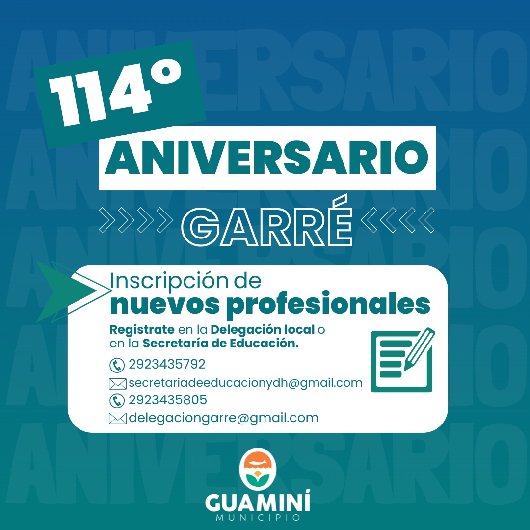 Este listado serรก parte de los festejos por un nuevo cumpleaรฑos de Garrรฉ, reconociendo a las y los profesionales que contribuyen al desarrollo de nuestra comunidad๐๏ธ.