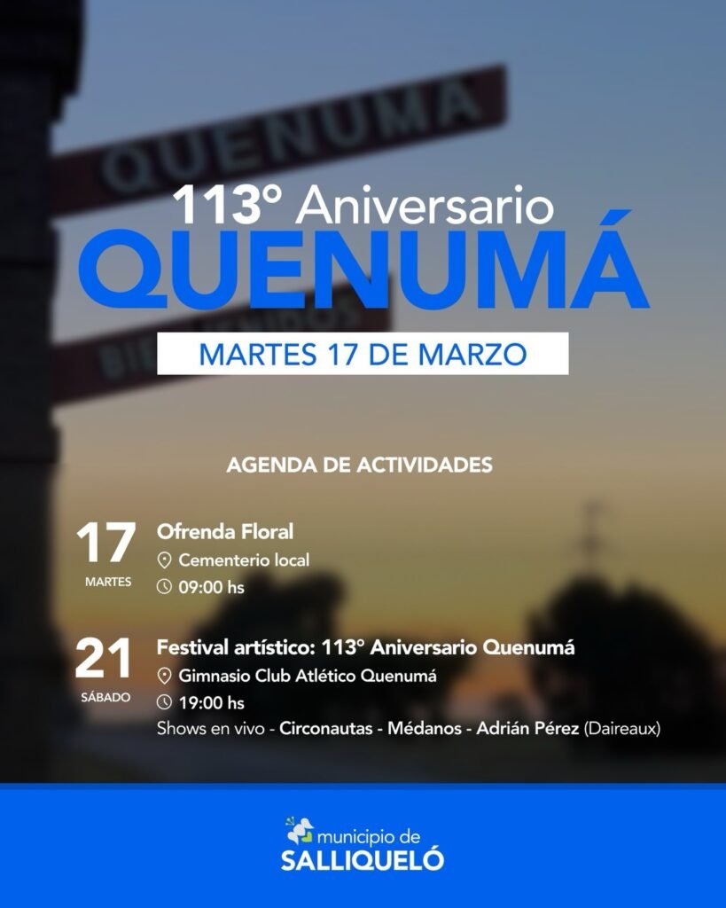 Invitamos a toda la comunidad a acompañar este nuevo aniversario y celebrar juntos la historia y la identidad de Quenumá. 🎶