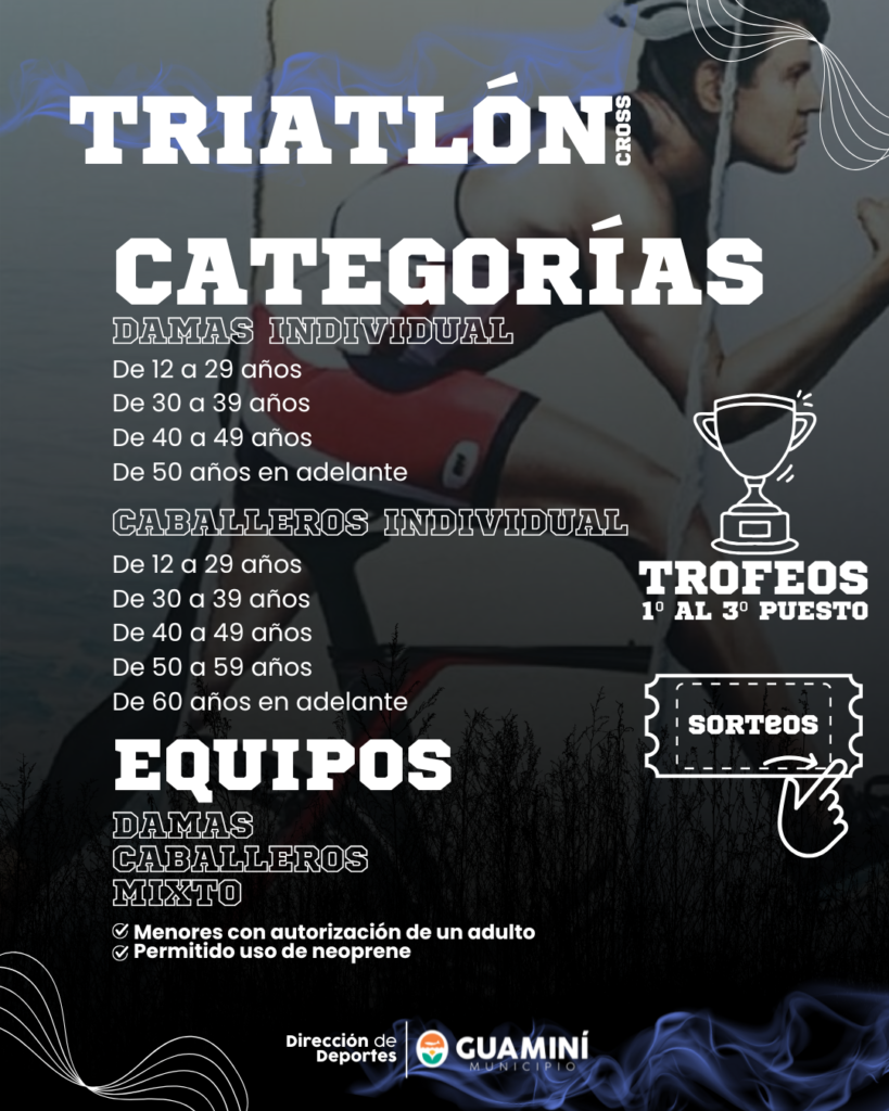 🏆 Las modalidades serán en equipos e individuales, con un recorrido de 750 mts. a nado, 20 kms. de ciclismo y 5 kms. de pedestrismo. ¡No te lo podés perder!