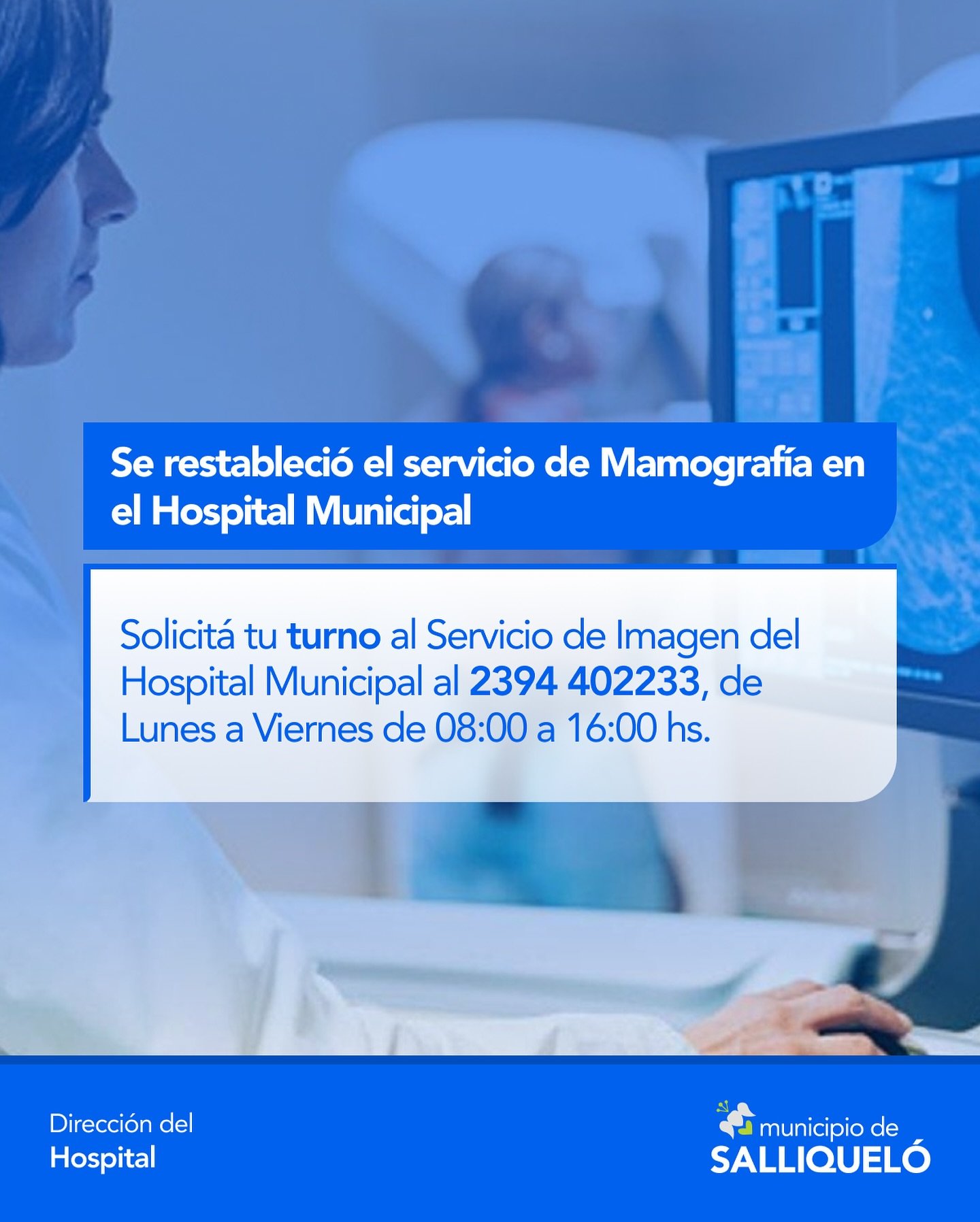 Se restableció el servicio de Mamografía en el Hospital Municipal.