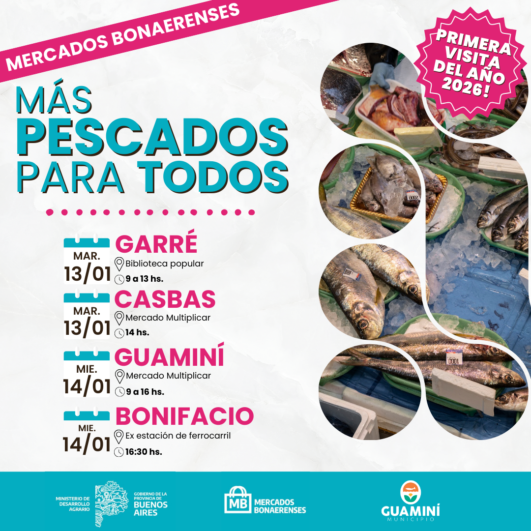 Con el objetivo de seguir acercando alimentos frescos y a precios accesibles, el camión de Pescados para Todos vuelve a recorrer nuestras localidades, en el marco del programa Mercados Bonaerenses del Gobierno de la Provincia de Buenos Aires, junto al Municipio de Guaminí 🤝🏛️