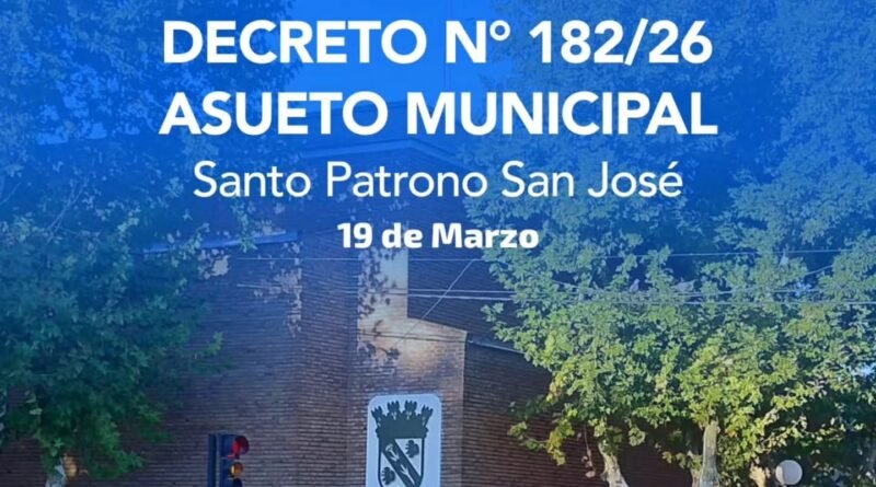Mediante el Decreto N° 182/26, se establece asueto administrativo para el día 19 de marzo, con motivo de la conmemoración del Santo Patrono San José.