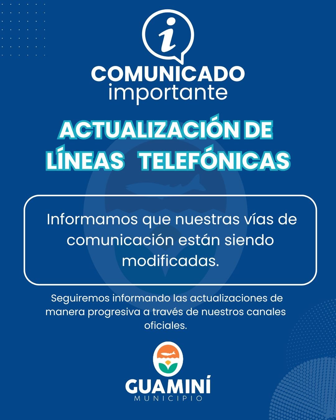Informamos a la comunidad que se encuentran en proceso de actualización los números de contacto de distintas dependencias municipales.