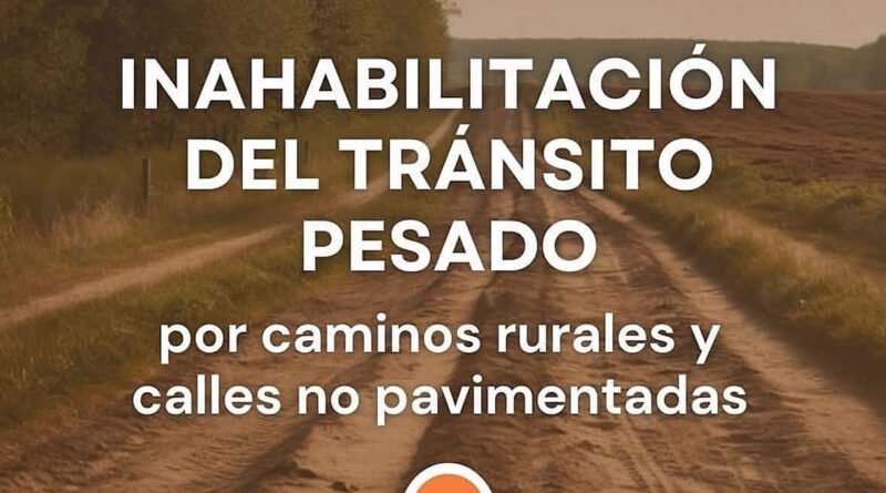 🚫QUEDA INHABILITADO EL TRÁNSITO PESADO POR LOS CAMINOS RURALES Y CALLES NO PAVIMENTADAS🚛
