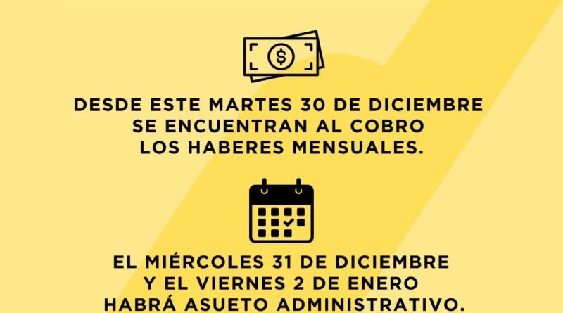 💲 Desde este martes 30 de diciembre se encuentran al cobro los haberes mensuales.