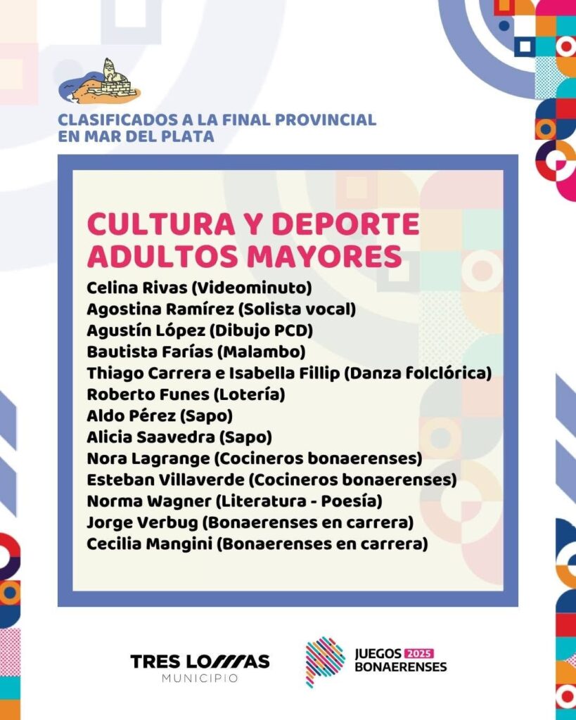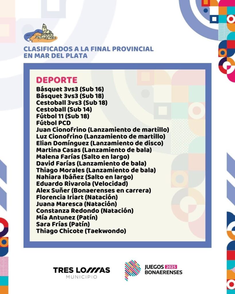 🙌 Del 13 al 18 de octubre se llevará adelante en Mar del Plata la Final Provincial de los Juegos Bonaerenses 2025, donde nuestro distrito estará representado con una delegación de 120 personas.