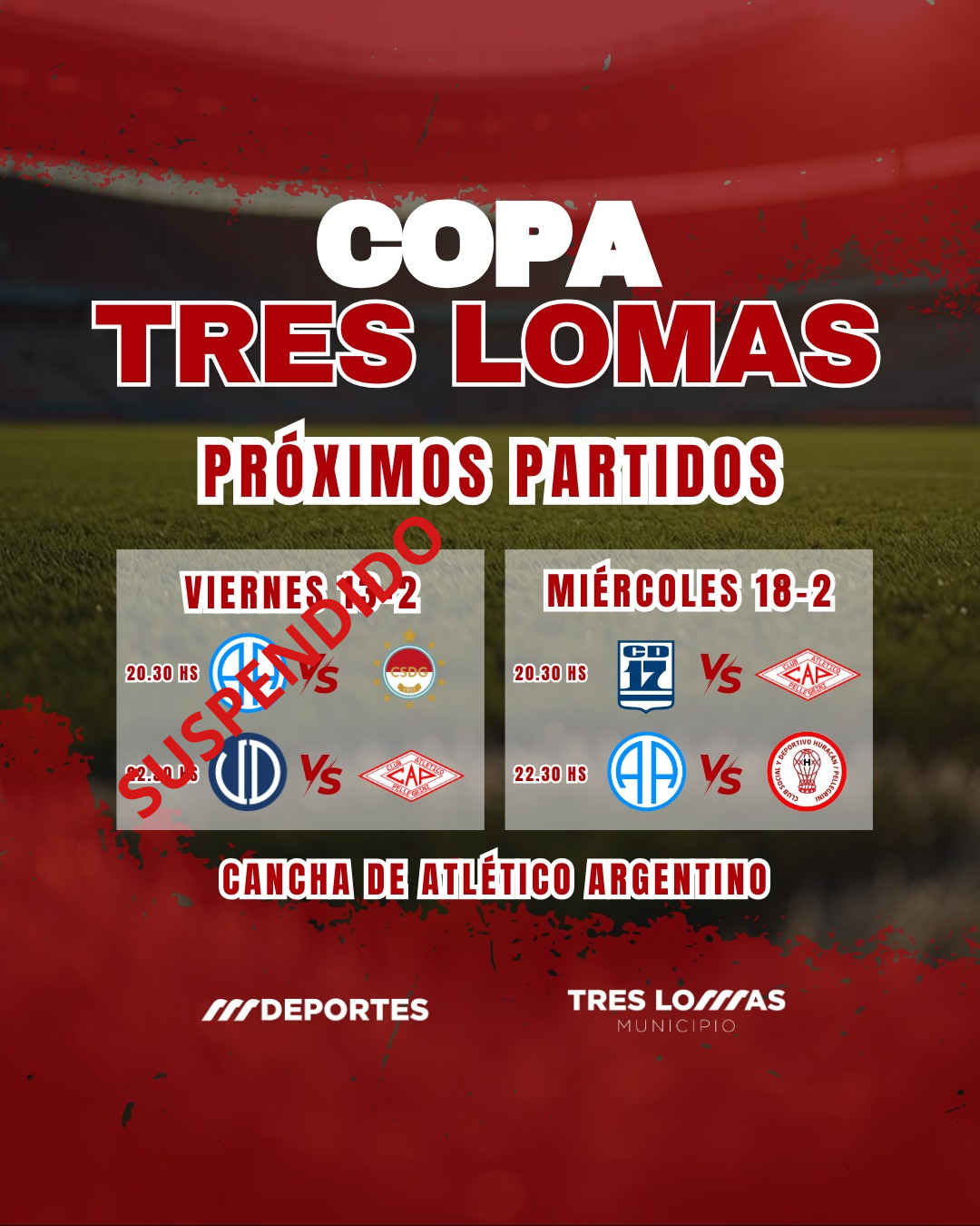 🟥QUEDA SUSPENDIDA LA FECHA DE HOY DE LA COPA TRES LOMAS
