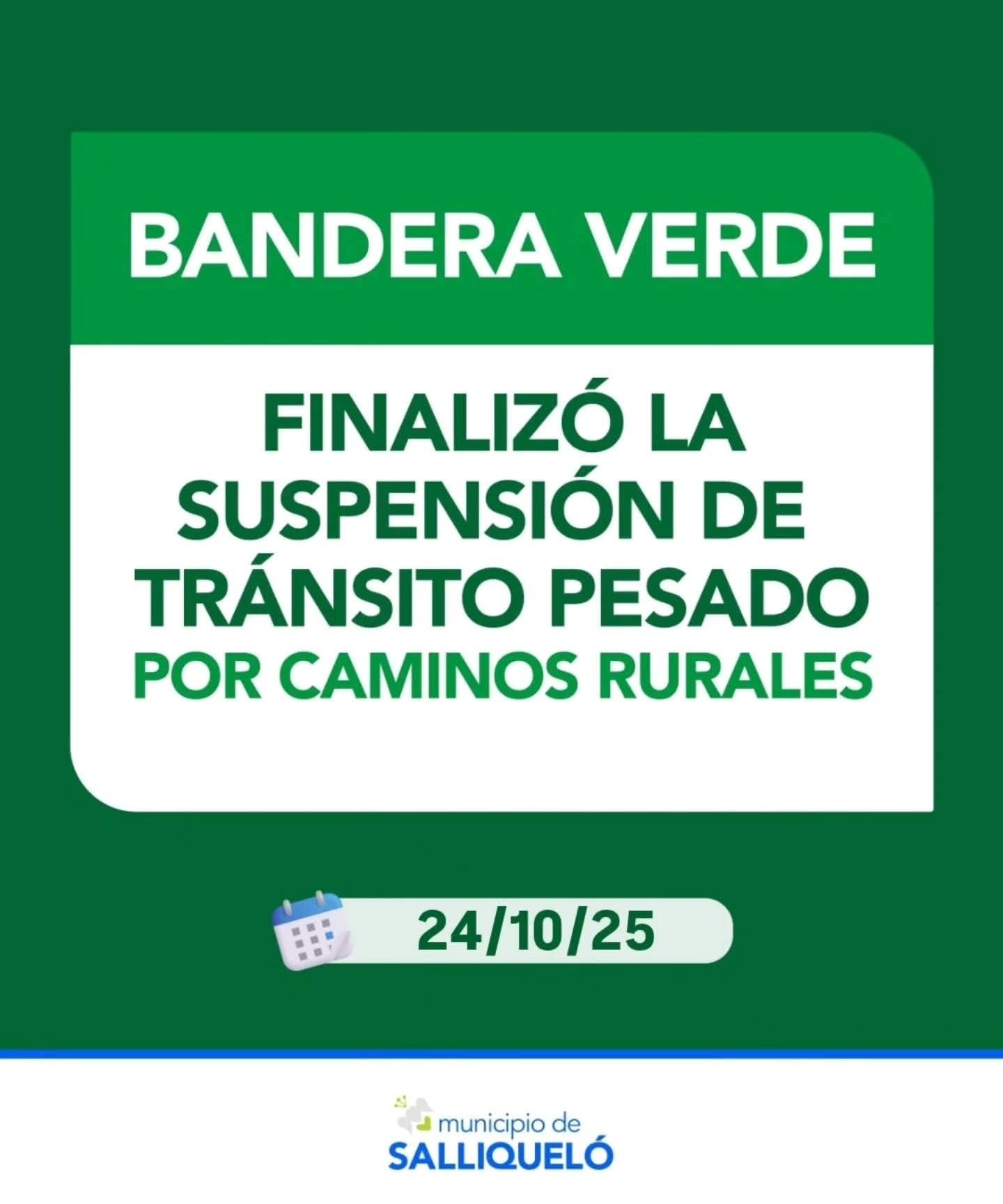 Tres Lomas: 🟩 Bandera verde para caminos rurales. Se vuelve a habilitar el tránsito.