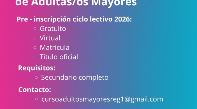 Leer másRegión Sanitaria 1 informa que se encuentra abierta la pre–inscripción a la capacitación “Operador/a de Cuidados de Adultas/os Mayores”. La propuesta