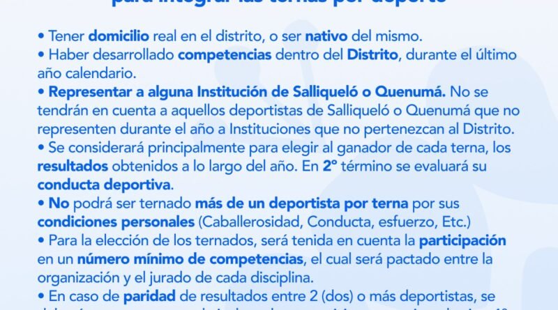 Leer másCompartimos las condiciones establecidas para la conformación de las ternas en cada disciplina: • Tener domicilio real en el distrito,
