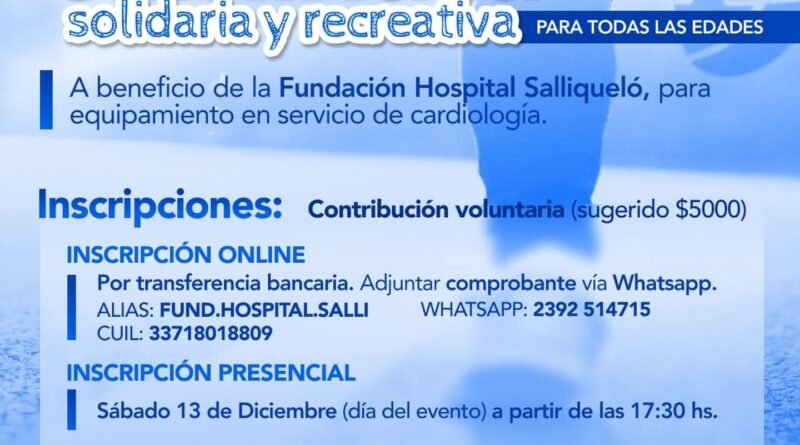 Leer másTe invitamos a ser parte de una propuesta saludable, recreativa y solidaria, a beneficio de la Fundación Hospital Salliqueló, destinada