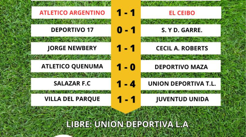 Deportes 9 de noviembre de 2025 admin Resultados Futbol Senior Juventud 5 – 2 Salazar Dep. Argentino 1 – 1 A. Argentino El Ceibo 0 – 1 Union Bonifacio Union Leer más