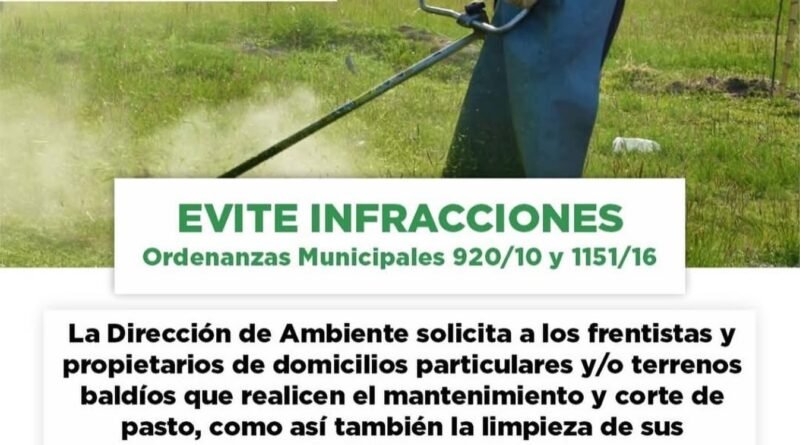 Leer másLa Dirección de Ambiente recuerda a frentistas y propietarios de domicilios particulares y terrenos baldíos la importancia de realizar el