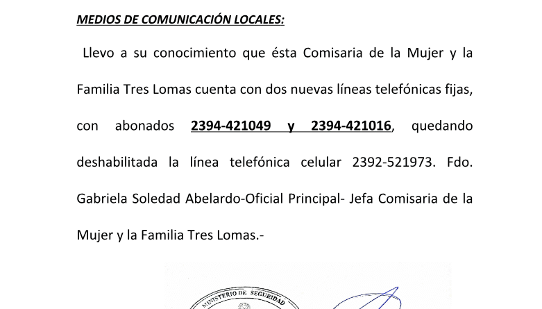 Leer másCOMUNICADO DE PRENSA Sr./a Director/a De ……………………………………… Secretaría de Asuntos Docentes de Tres Lomas, llama a inscripción para conformar listado