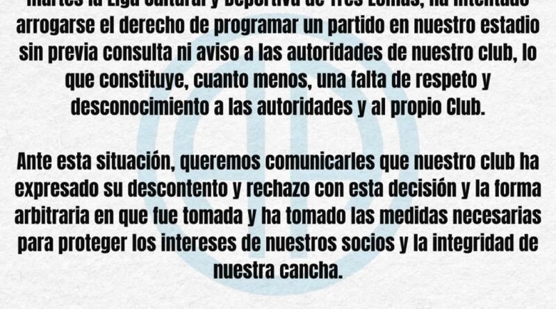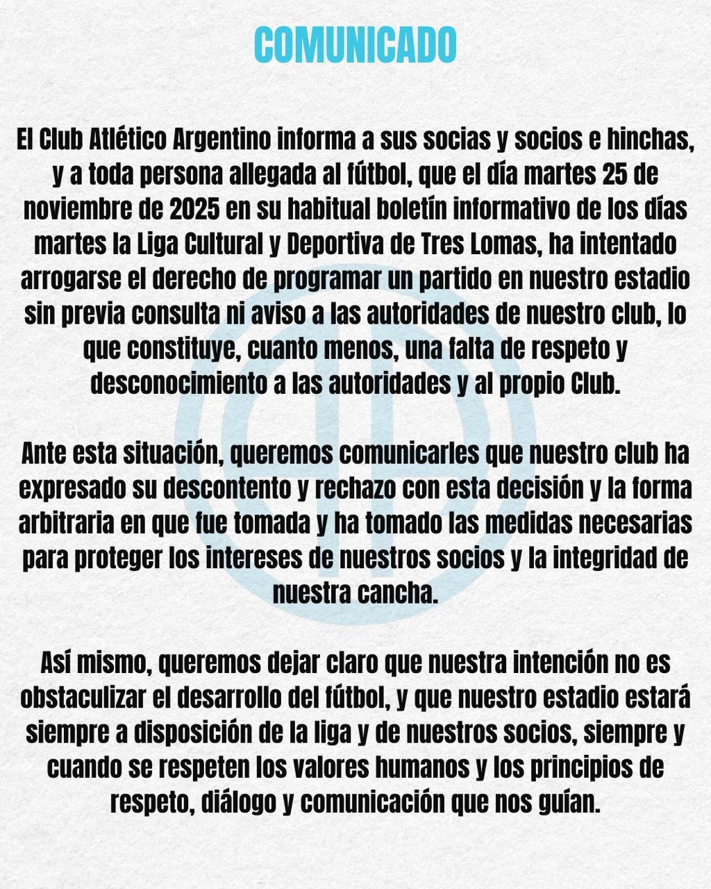 Club A. Argentino Comunicado de Prensa