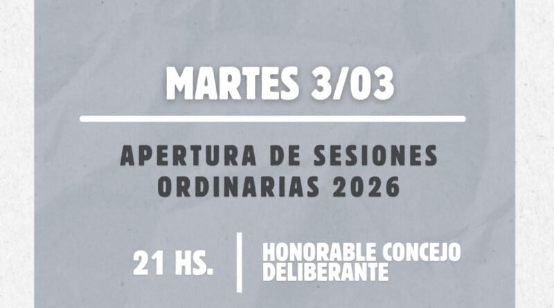 El presidente del Honorable Concejo Deliberante de Tres Lomas, Luis María Caminos, encabezará este martes 3 de marzo a las 21 hs. el Acto de Apertura del Período de Sesiones Ordinarias 2026.