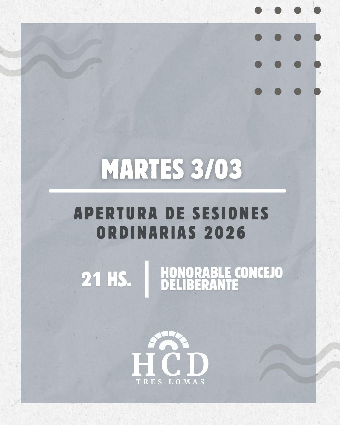 Concejo Deliberante Tres Lomas: Invitación Apertura de sesiones 2026