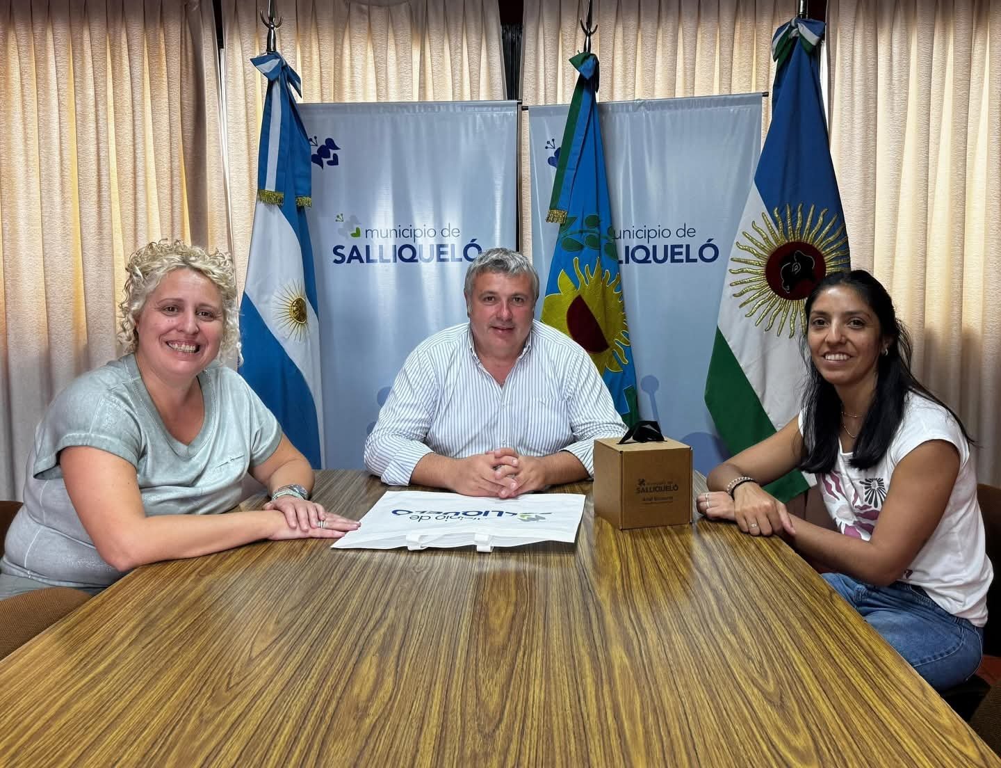Nuestro Intendente Municipal, Dr. Ariel Succurro; y la Secretaria de Gobierno, Rosalba Vargas, recibieron en la Sala de Situación del Palacio Municipal a Daniela García, quien dejó en estos días su puesto al frente de la Biblioteca Pública Municipal y Popular “Dr. Andrés Sanséau”.