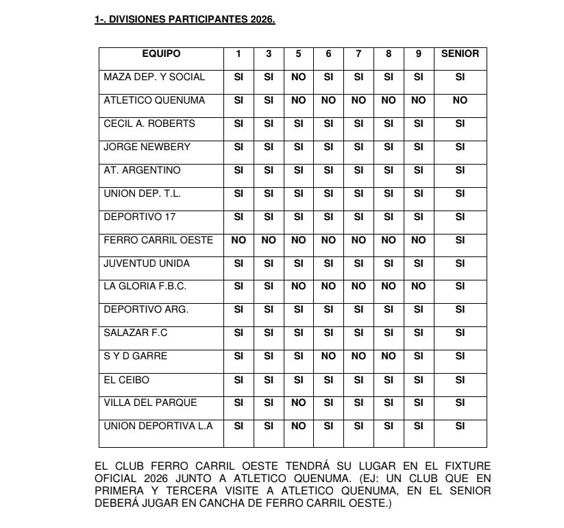 DIVISIONES PARTICIPANTES 2026.