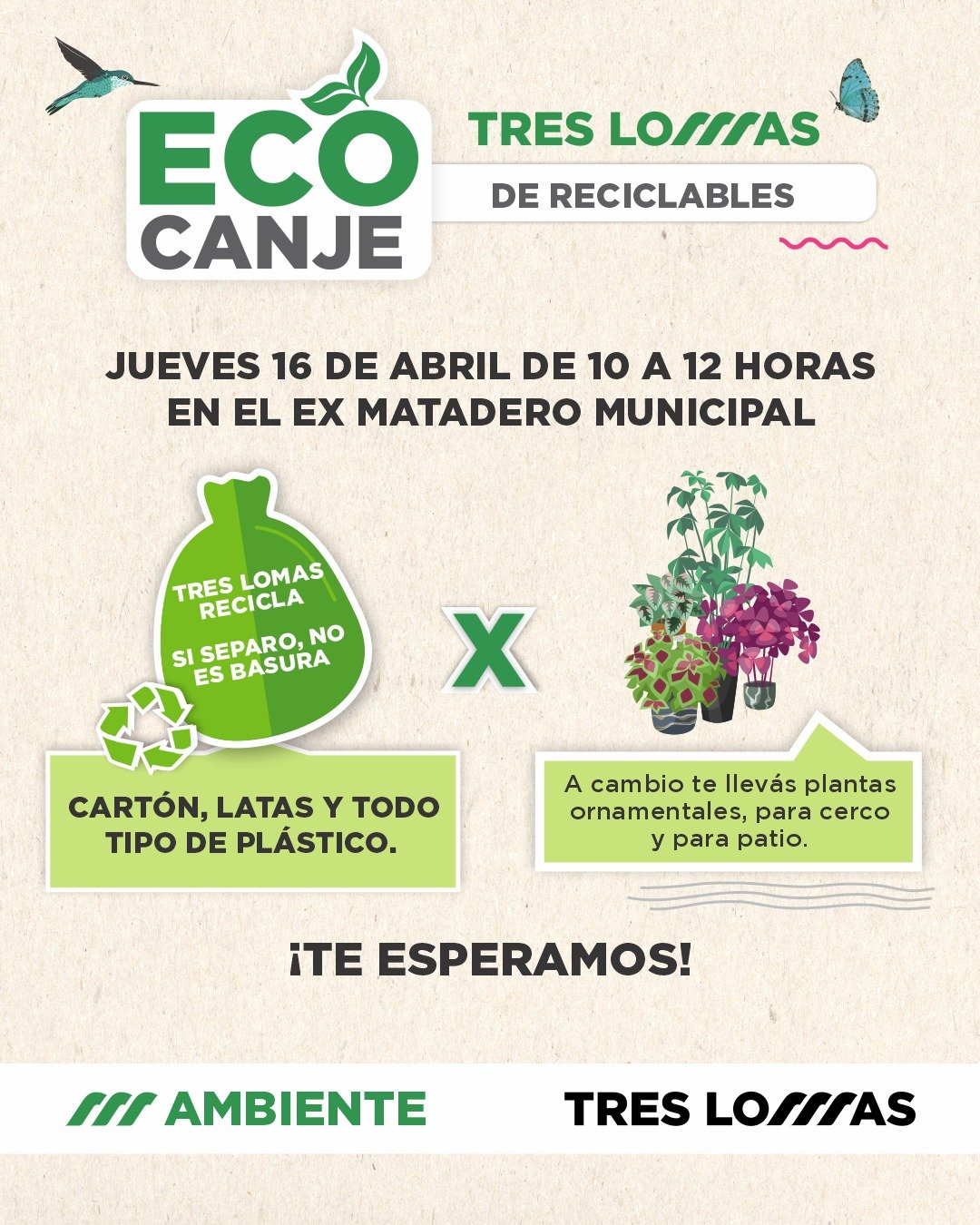 La Dirección de Ambiente realizará este jueves 16 de abril una nueva edición de la jornada “Eco Canje”, la cual se llevará adelante en el Ex Matadero Municipal de 10 a 12 hs.