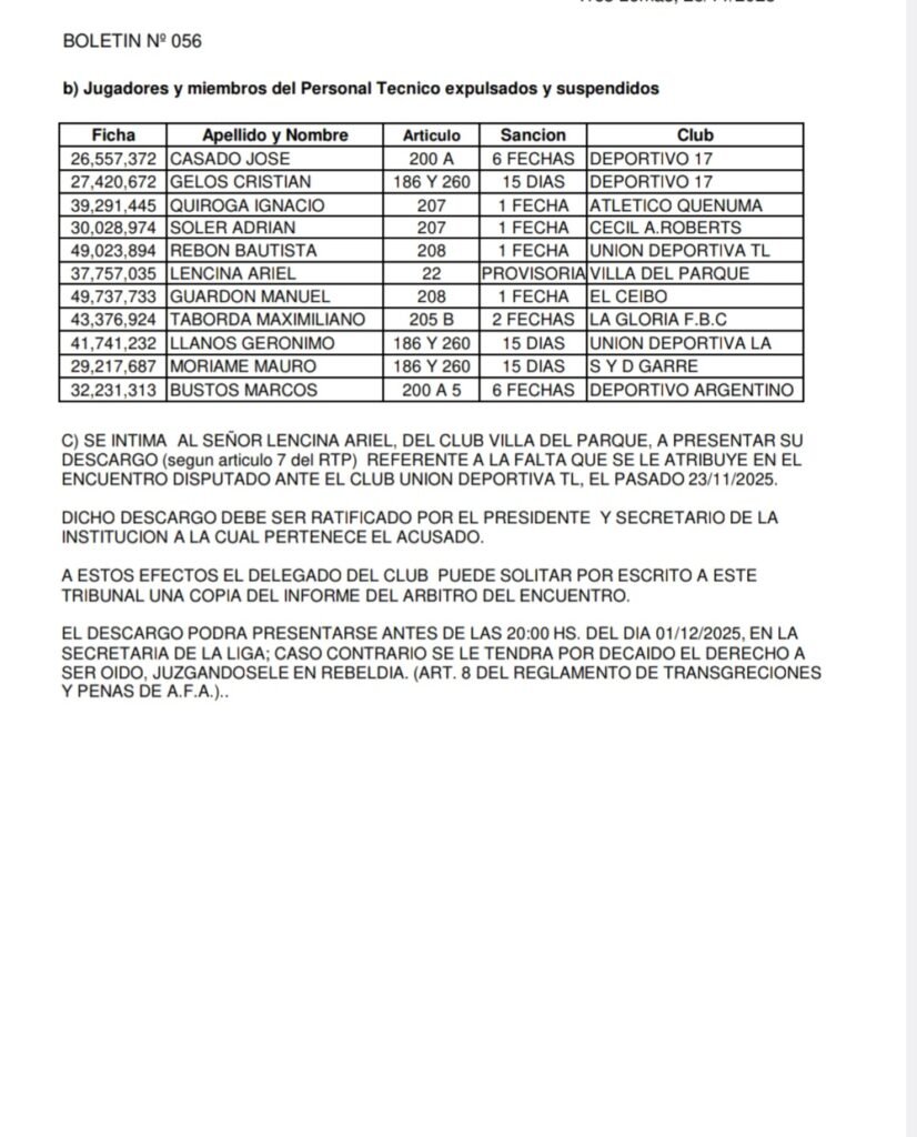 Deportes Futbol de la Liga Cultural: Jugadores y miembros del Personal Técnico expulsados y suspendidos – PROXIMA FECHA 26 de noviembre de 2025 admin