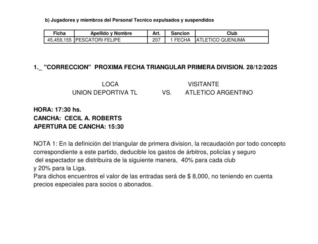 Deportes Futbol de la Liga Cultural: Jugadores y miembros del Personal Técnico expulsados y suspendidos – PROXIMA FECHA 24 de diciembre de 2025 admin