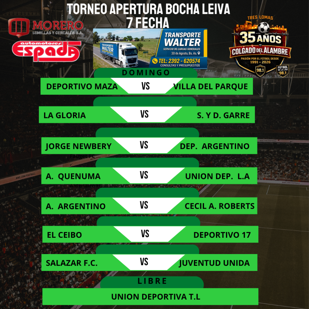 Deportes Fútbol de La Liga: Próxima Fecha Torneo Apertura BOCHA LEIVA 7.ª Fecha 19 de abril de 2026 admin