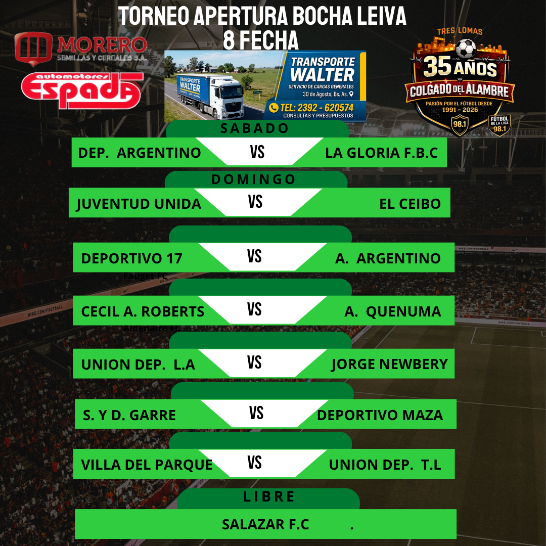 Deportes Fútbol de La Liga: Próxima Fecha Torneo Apertura BOCHA LEIVA 8.ª Fecha 26 de abril de 2026 admin