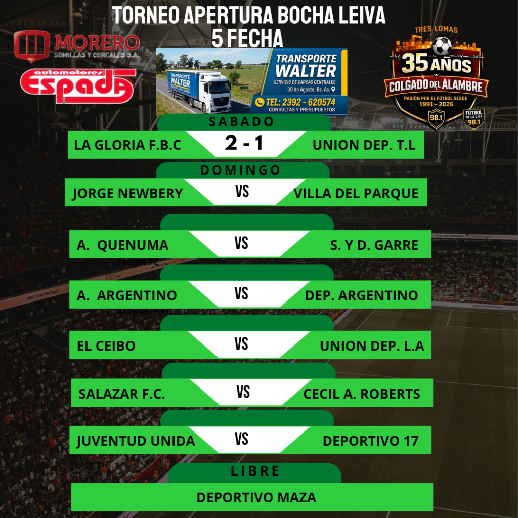 Fútbol de La Liga: Torneo Apertura BOCHA LEIVA 5.ª Fecha