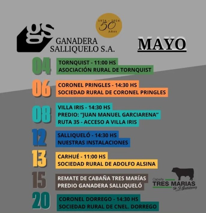 Ganadera Salliquelo: 📅 ¡Agenda de Remates – Mayo 2026 📅