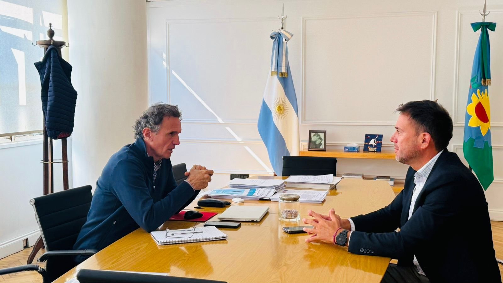En ese sentido, se reunió con el Ministro de Gobierno bonaerense, Carlos Bianco, con quien realizó un repaso de las obras públicas y convenios vigentes entre el Municipio de Tres Lomas y la Provincia.