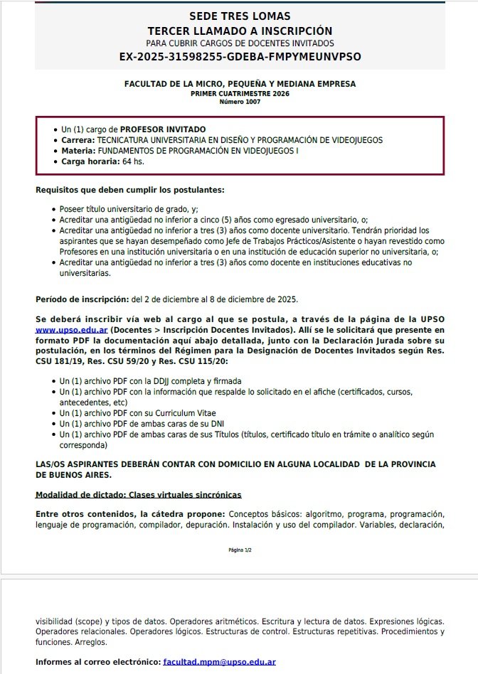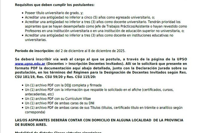 La FACULTAD DE LA MICRO, PEQUEÑA Y MEDIANA EMPRESA informa que se encuentra abierta la inscripción para cubrir cargos de docentes invitados, para el dictado de asignaturas durante el primer cuatrimestre del ciclo 2026.