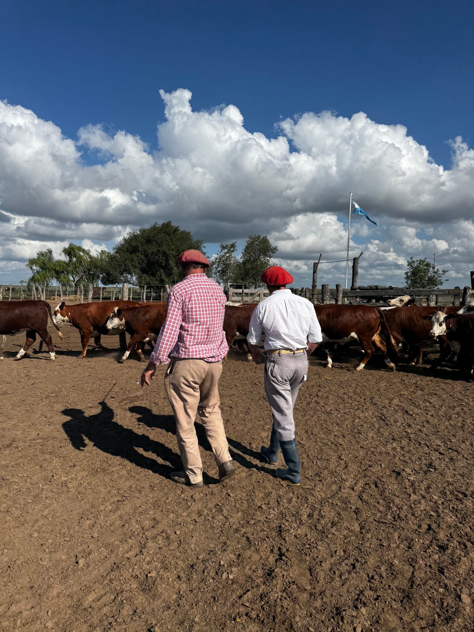 La primera recorrida se realizó en el establecimiento “6 de Agosto” de la familia Díaz, donde estuvieron presentes Emanuel Fernández y José Orbegozo, quienes recorren distintos establecimientos de la región colaborando con los productores en la selección de los animales que participarán del certamen.