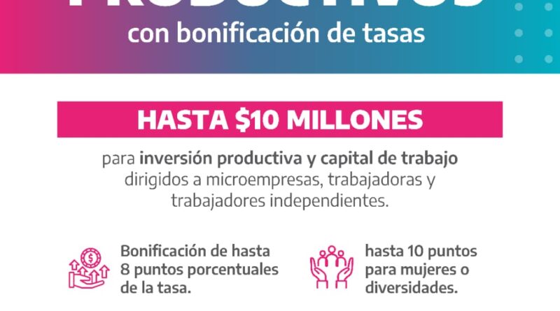 El monto máximo del crédito es de $10 millones, con bonificación de hasta 10 puntos porcentuales en la tasa de interés. Los fondos pueden destinarse a: