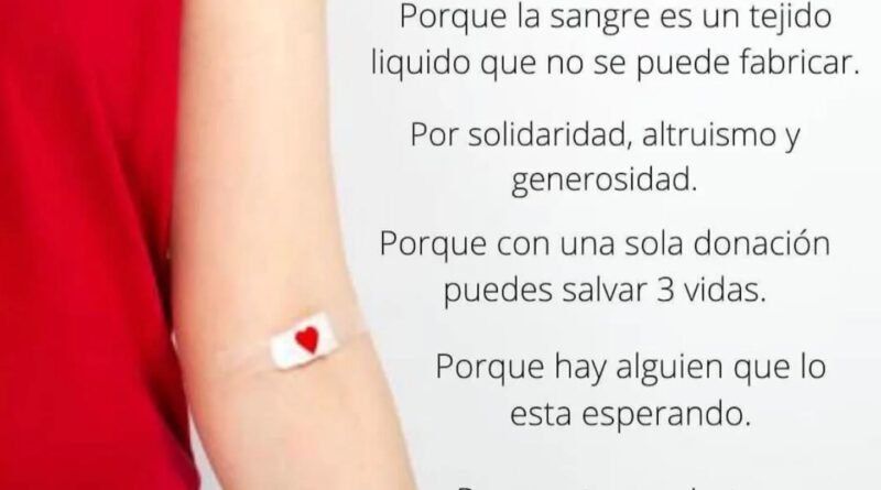 La Secretaría de Salud junto al Servicio de Hemoterapia, llevará adelante el próximo viernes 27 de marzo una nueva colecta de sangre y registro de donante de médula ósea, la cual se realizará en el Hospital Municipal de 7 hs a 13.30 hs.