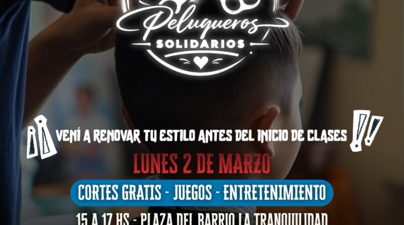 El próximo lunes 2 de marzo, se llevará adelante una jornada de “Peluqueros solidarios”, con el objetivo de acompañar a los niños da cara al inicio del ciclo lectivo. Durante la jornada, se realizarán cortes de cabello gratuitos y habrá juegos y entretenimientos para los presentes.