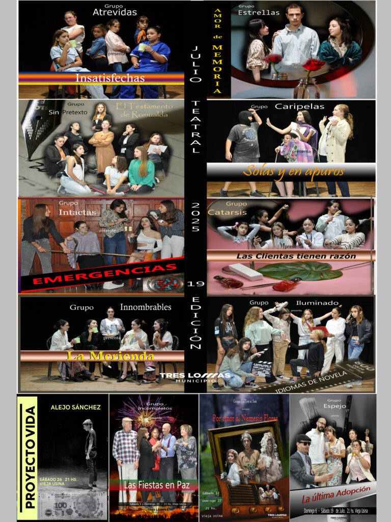 Todas las funciones serán a las 21 hs. en el Centro Cultural Vieja Usina y este evento es auspiciado por la Municipalidad de Tres Lomas.