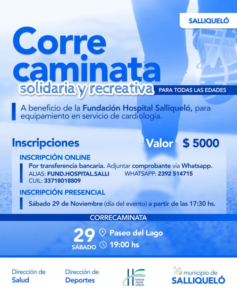 Te invitamos a ser parte de una propuesta saludable, recreativa y solidaria, a beneficio de la Fundación Hospital Salliqueló, destinada a equipamiento para el servicio de cardiología del Hospital Municipal.