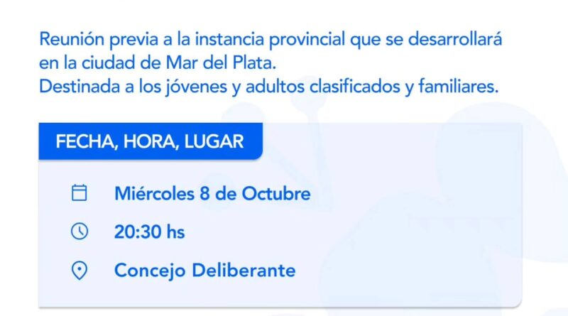 Invitamos a los jóvenes, adultos y familiares clasificados a participar de la reunión informativa previa al viaje a Mar del Plata.