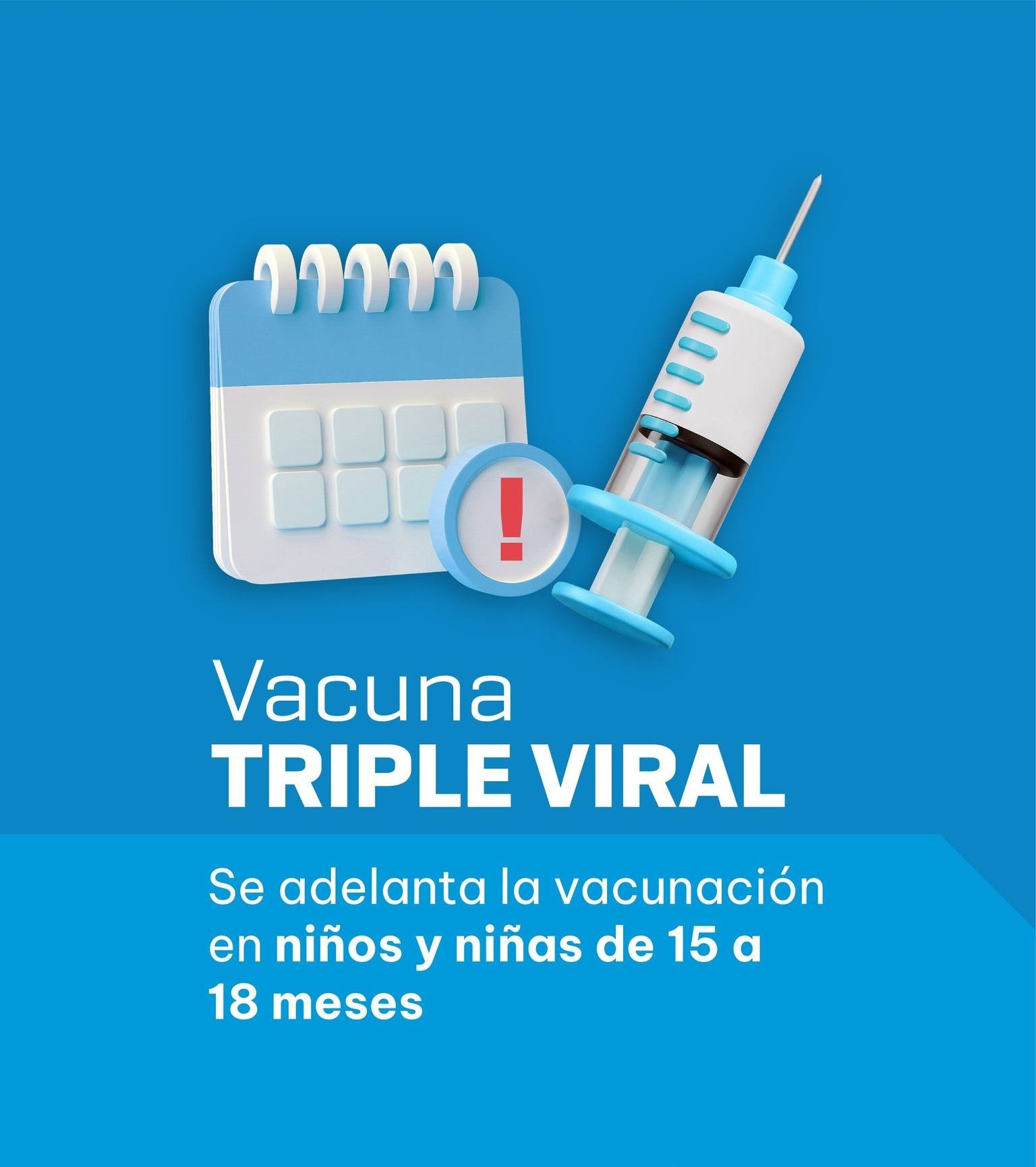 La Municipalidad informa que, a partir del 1 de enero de 2026, se adelanta la aplicación de la segunda dosis de la vacuna triple viral, que protege contra sarampión, rubéola y paperas.