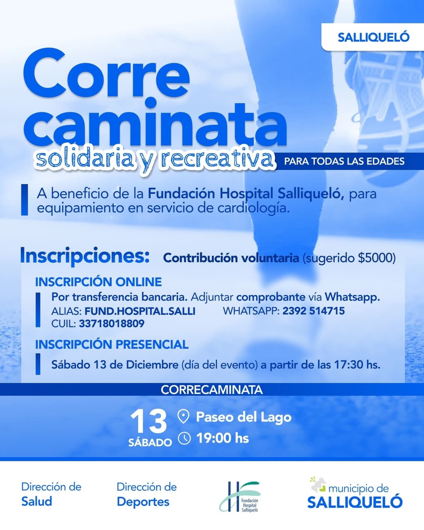 Te invitamos a ser parte de una propuesta saludable, recreativa y solidaria, a beneficio de la Fundación Hospital Salliqueló, destinada a equipamiento para el servicio de cardiología del Hospital Municipal.